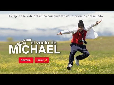 “Cada mañana Michael madruga, consulta las condiciones meteorológicas y las configuraciones de pista de Barajas con la emisora que tenía su padre, se calza su gorra roja, sale de casa, a sólo dos manzanas del aeropuerto, coge carrerilla por la calle Bergatín y fiuuuuuu. Con los brazos abiertos como un Boeing 747, terrevuela hasta que llega al autobús que le lleva cada día hasta el centro que tiene en Colmenar Viejo la asociación Envera, dedicada a la integración de hijos de empleados de Iberia con alguna discapacidad. «Señores pasajeros, les habla el comandante Antonio Martín, Michael. Preparados para el despegue». Y entonces el autobús arranca. Cada día es un viaje para Michael. «Sin volar sería otra persona», admite. «Si el vuelo va bien, todo irá bien». Su pasaporte dice que tiene 47 años, una discapacidad intelectual y tres cámaras de fotos.”